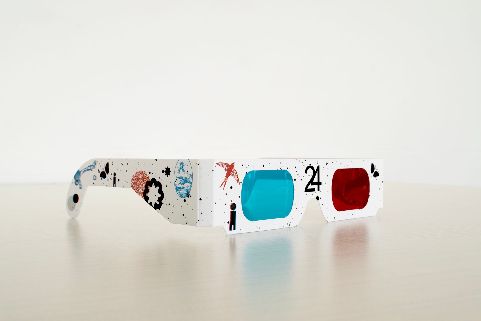 To extend the magazine’s 3D concept beyond the printed spreads, Canyon Creative wanted to hand out custom 3D glasses as a promotional piece. In designing the glasses, I created a collage using visual elements from each spread, allowing the design to reflect and represent every featured writing piece. This approach helped visually connect all of the content while reinforcing a cohesive and engaging experience for the audience.